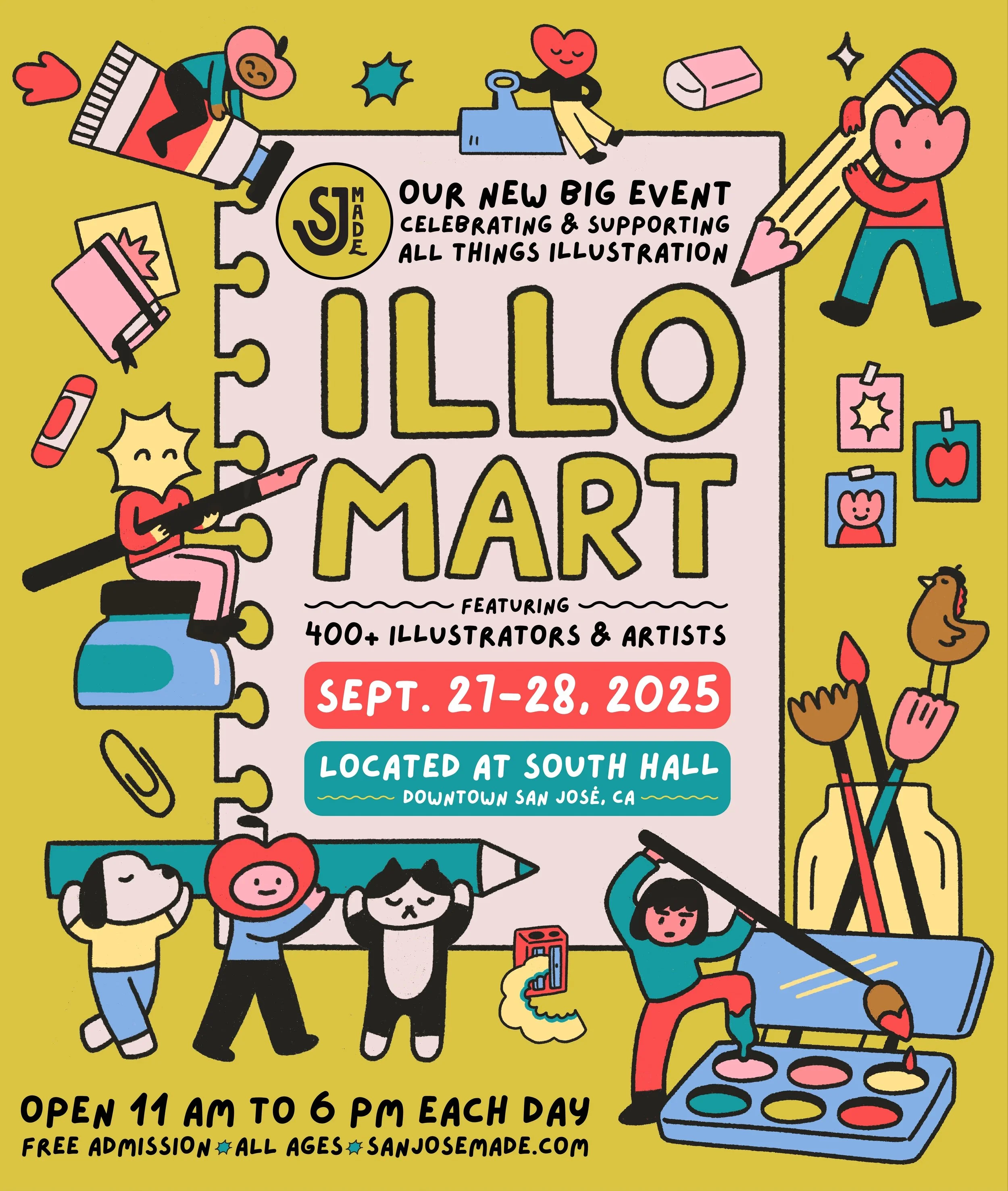 Happening on Sept. 27-28, 2025 and located at South Hall in downtown San José, ILLO MART will bring together 400+ of our favorite illustrators all in one place. Free admission for attendees. Service animals only.
