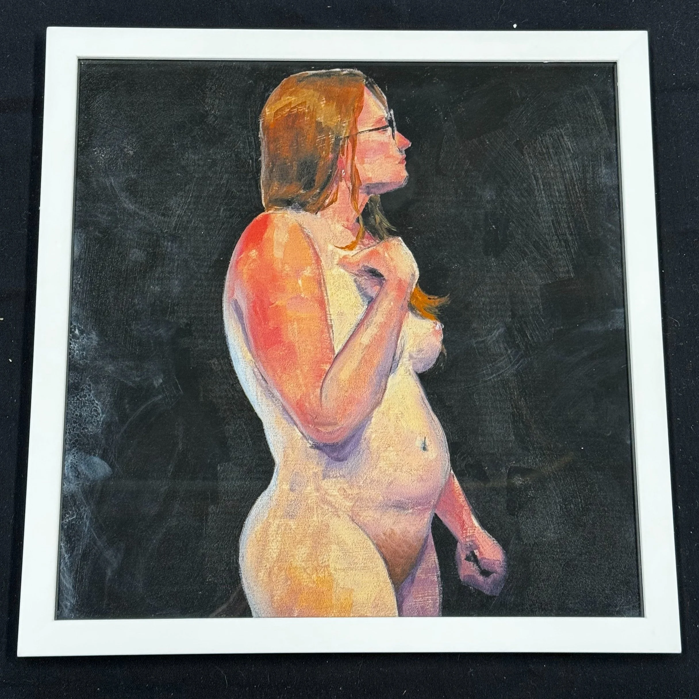 10×10 framed painting in oil on linen panel. (Art Model: Elizabeth).
